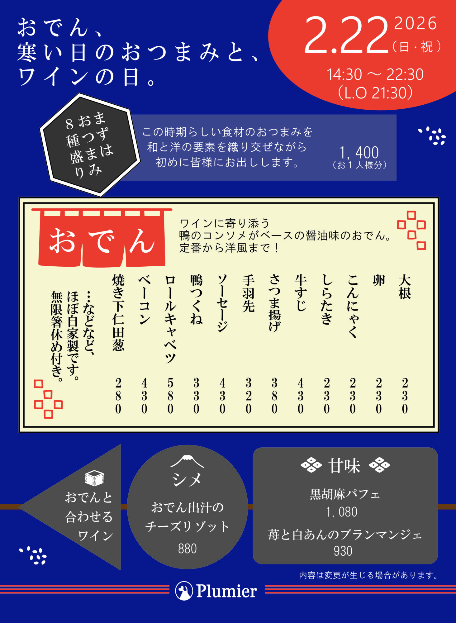日本ならではの旬の素材を使ったお料理や、ビストロ定番のフランス地方料理を、作り手の顔が見えるようなワインと共にお楽しみいただける空間を目指しています。