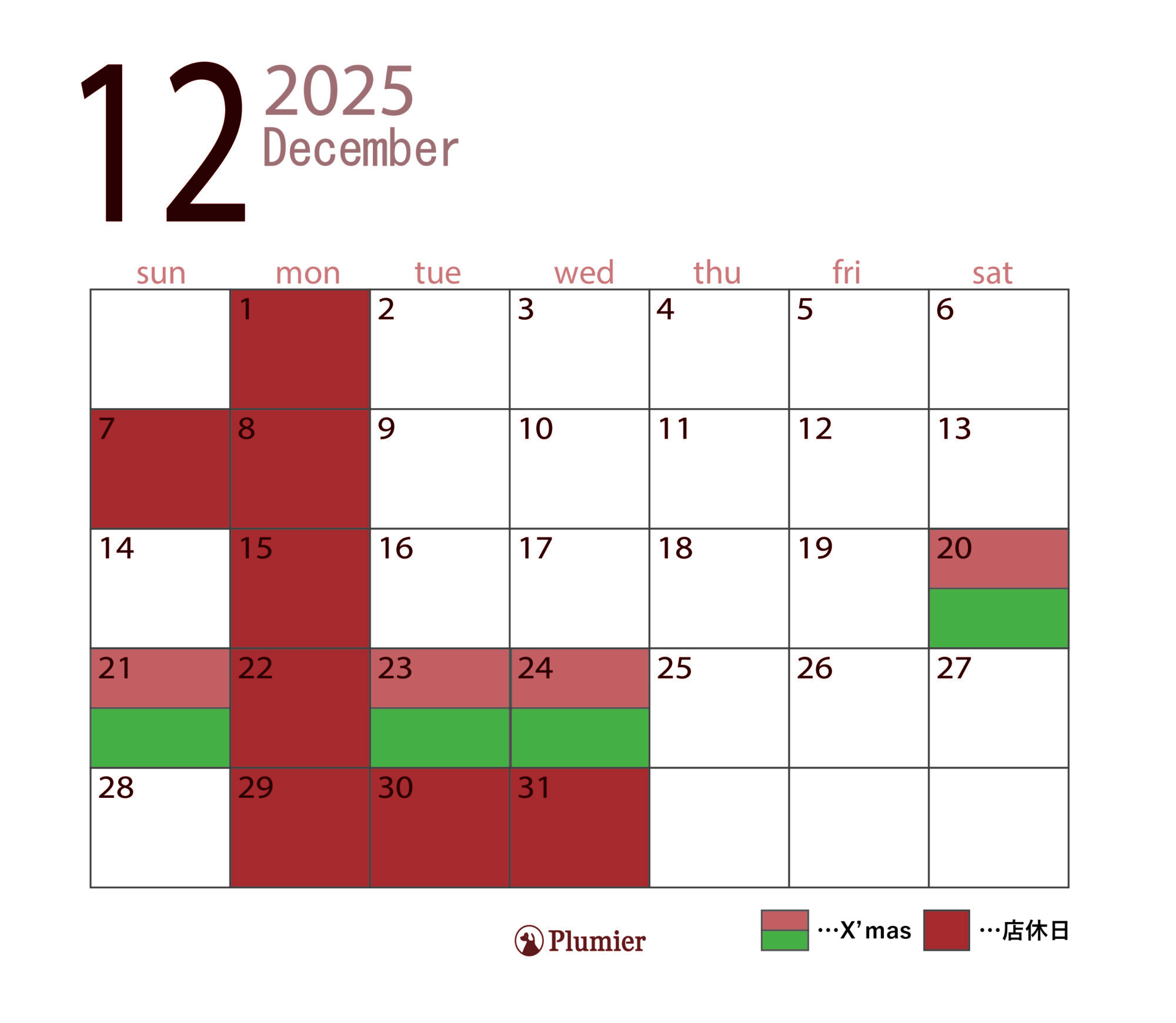 12月営業日