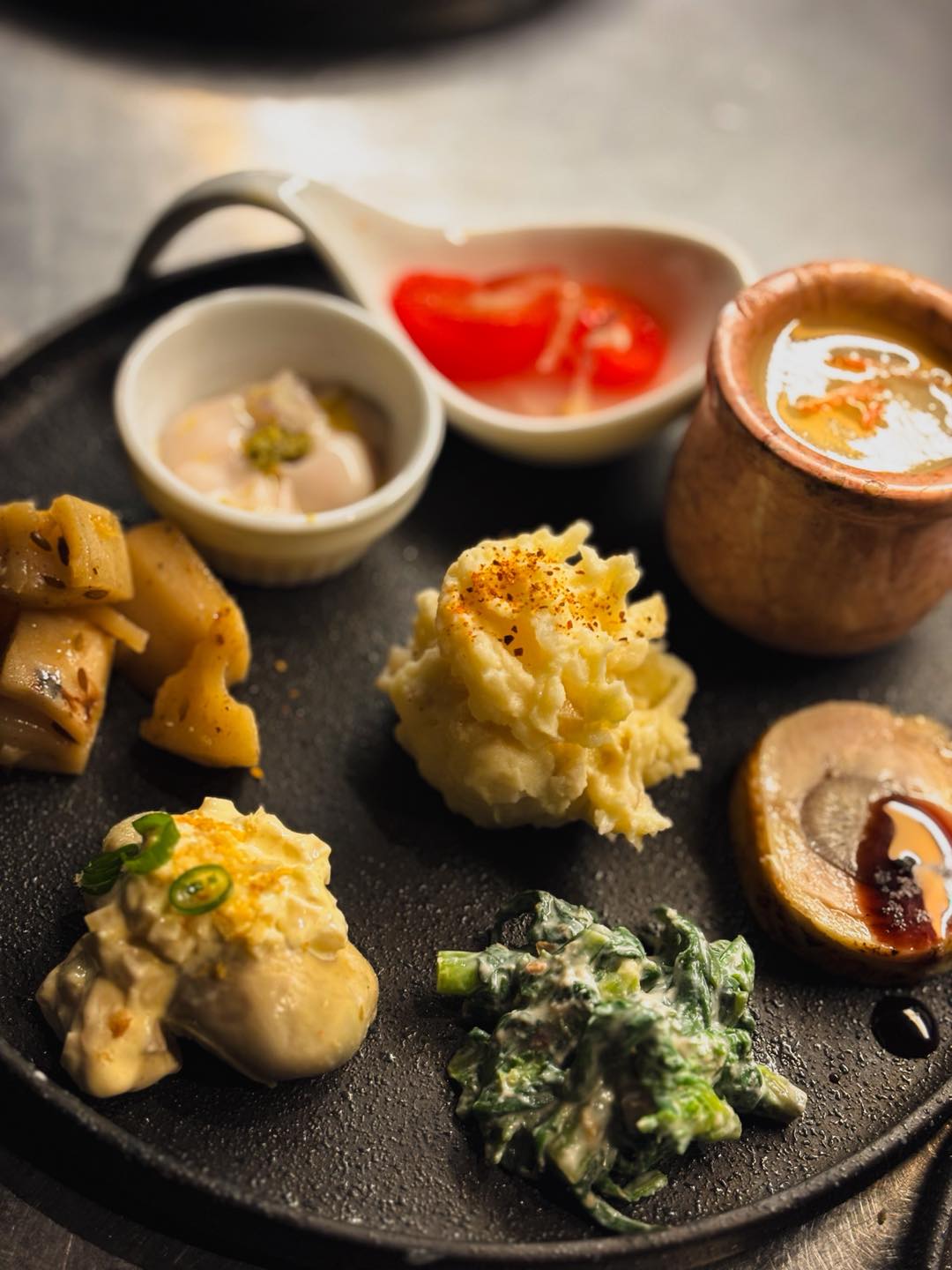 初めにお出ししたおつまみ8種のプレート、そして鴨出汁のおでん。