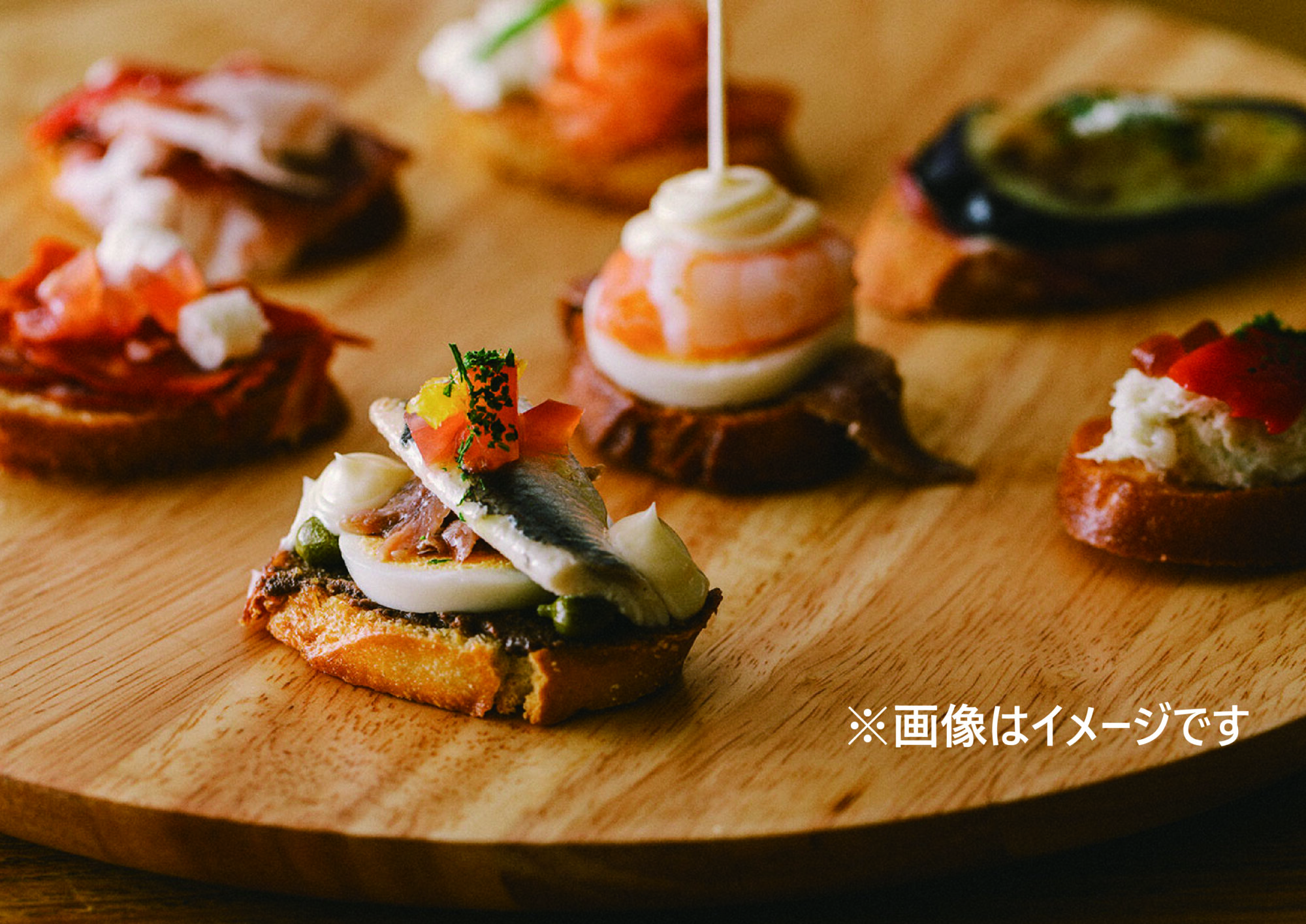 普段のラインナップ(定番メニュー+季節のメニュー)を少し縮小したような内容に加えまして、ピンチョスいろいろ(画像2枚目)と、牛リブロースのステーキフリット(画像3枚目)をご用意します!