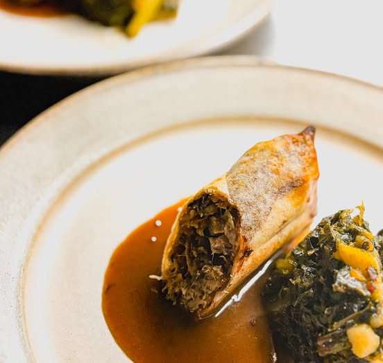 昨日の夜は一瞬ですが雪(あられ?)がちらついて、はしゃいでお客様と入り口近くまで行って眺めたりしていました。 さて、前菜では豚すね肉と豚足の包み焼き、ご用意しています。 黒ビールと玉ねぎで煮込んだ豚すね肉に豚足を合わせて […]